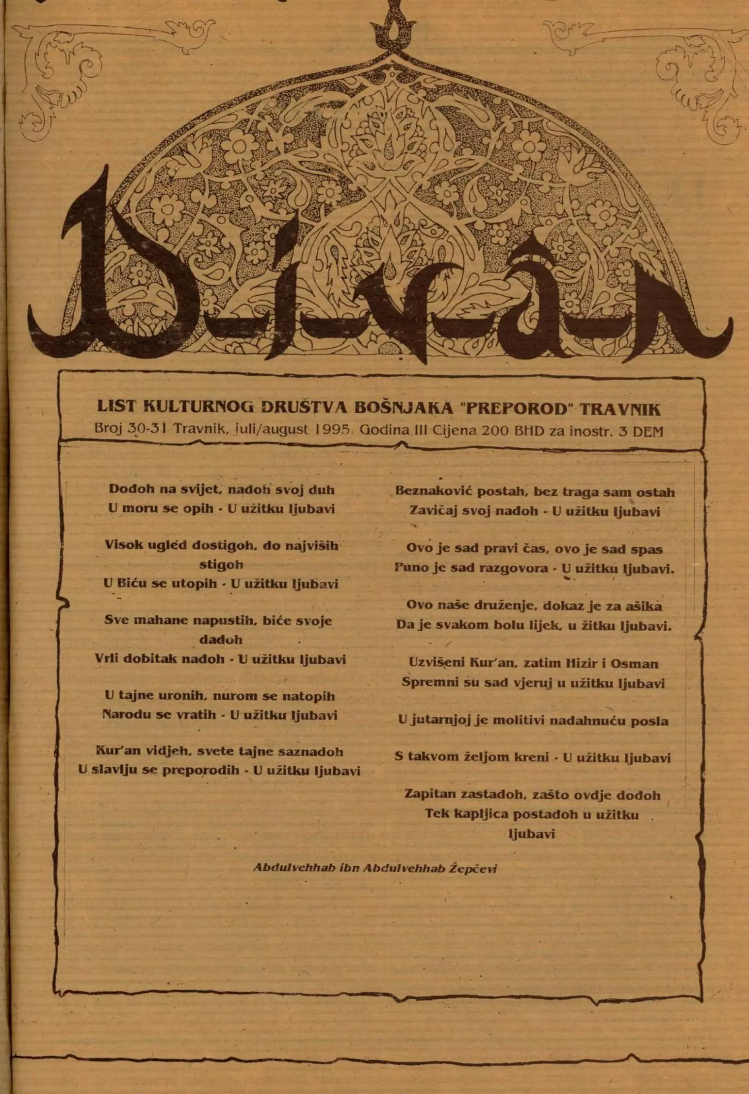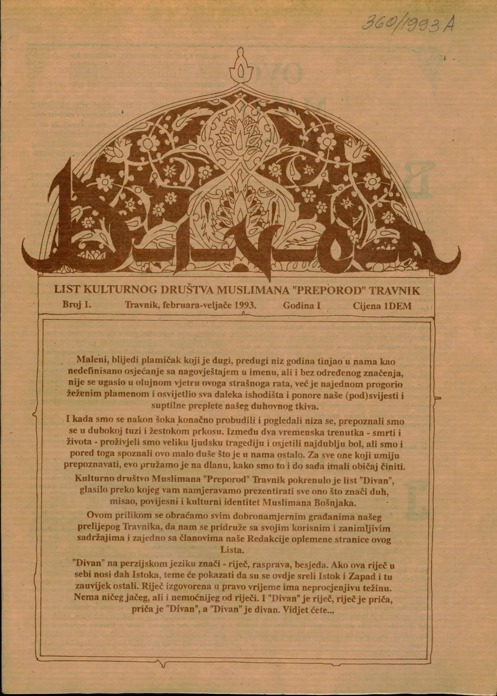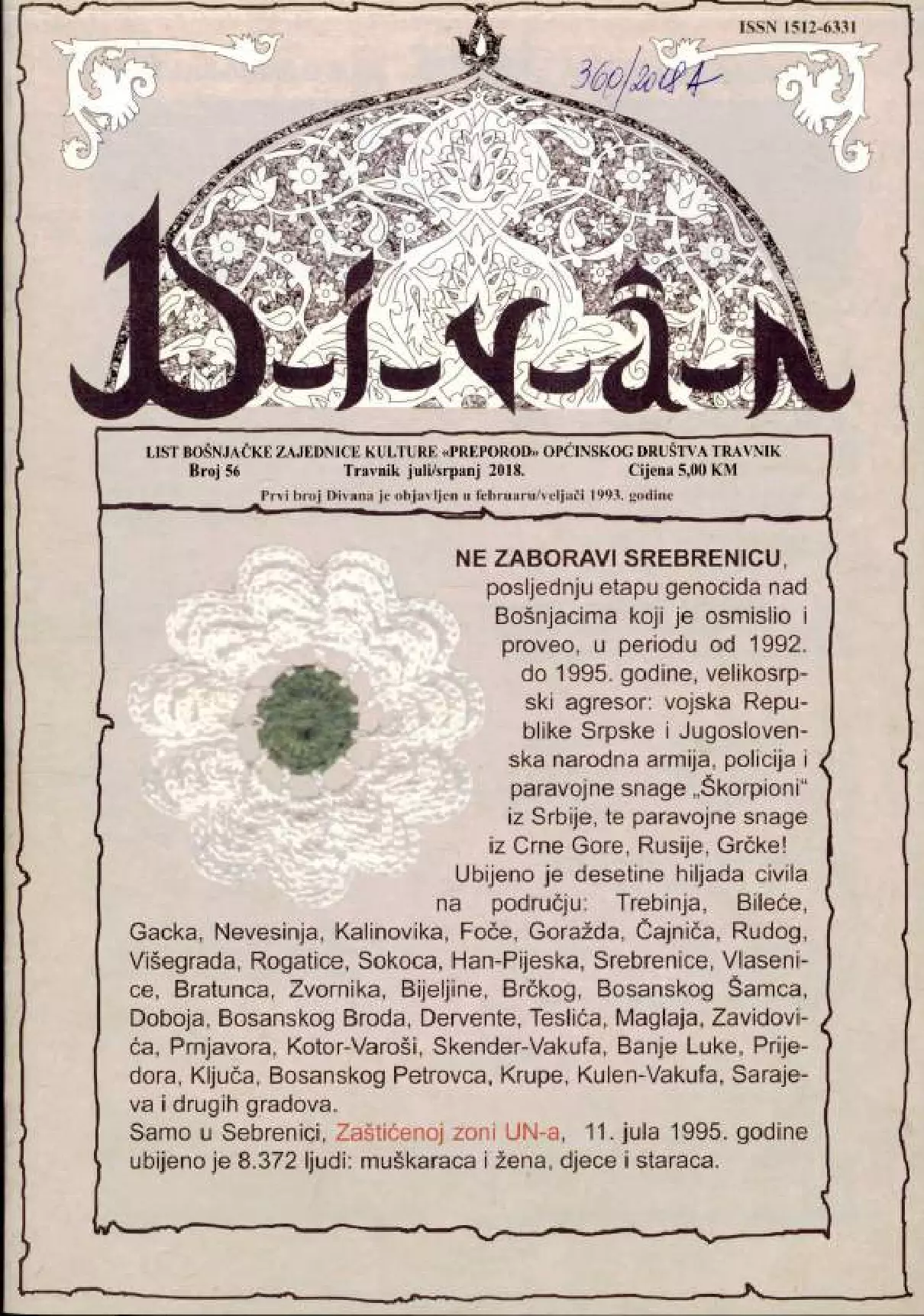 Radovi u DIVANU objavljivat će se na bosanskom, hrvatskom, srpskom i engleskom jeziku.
