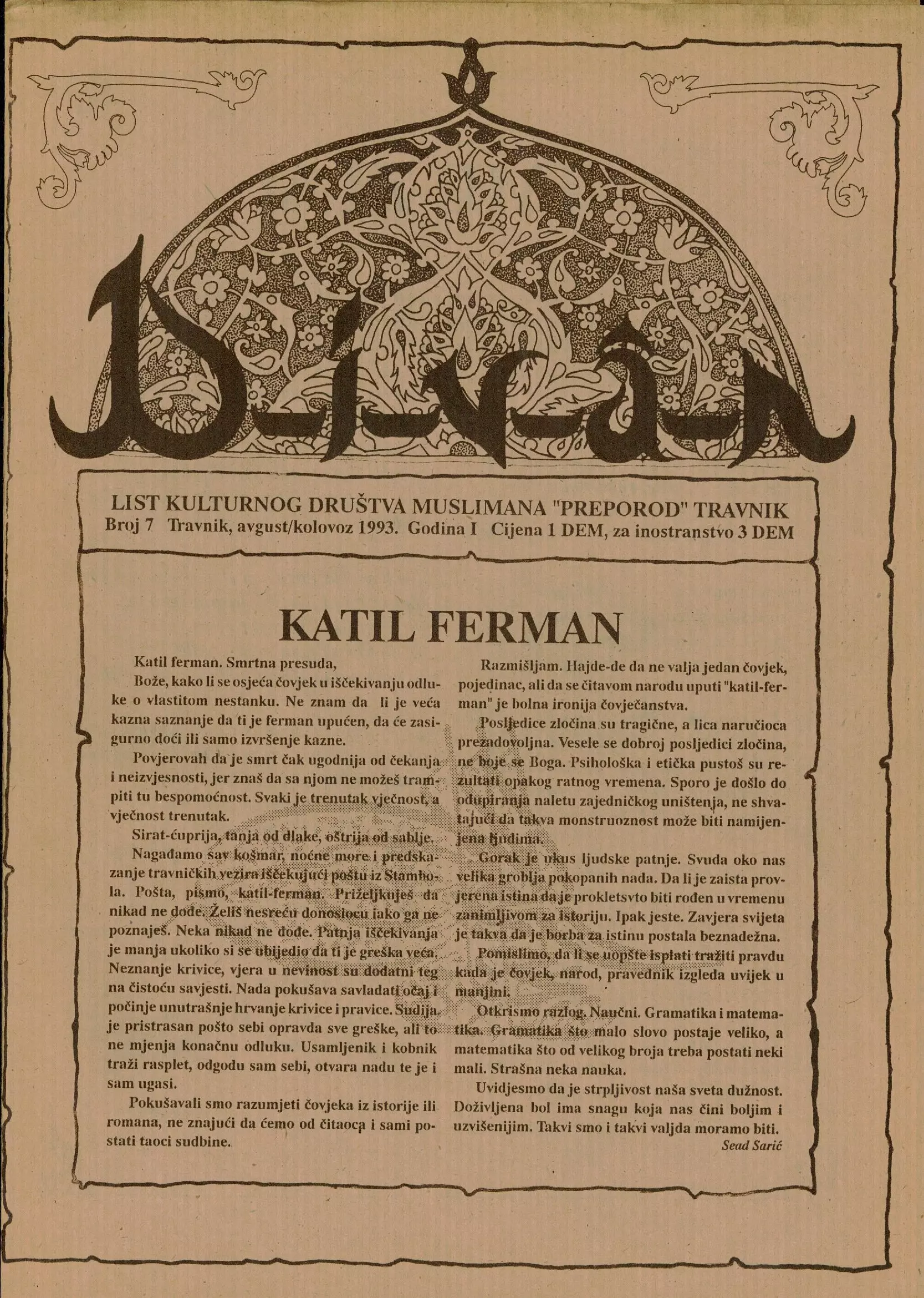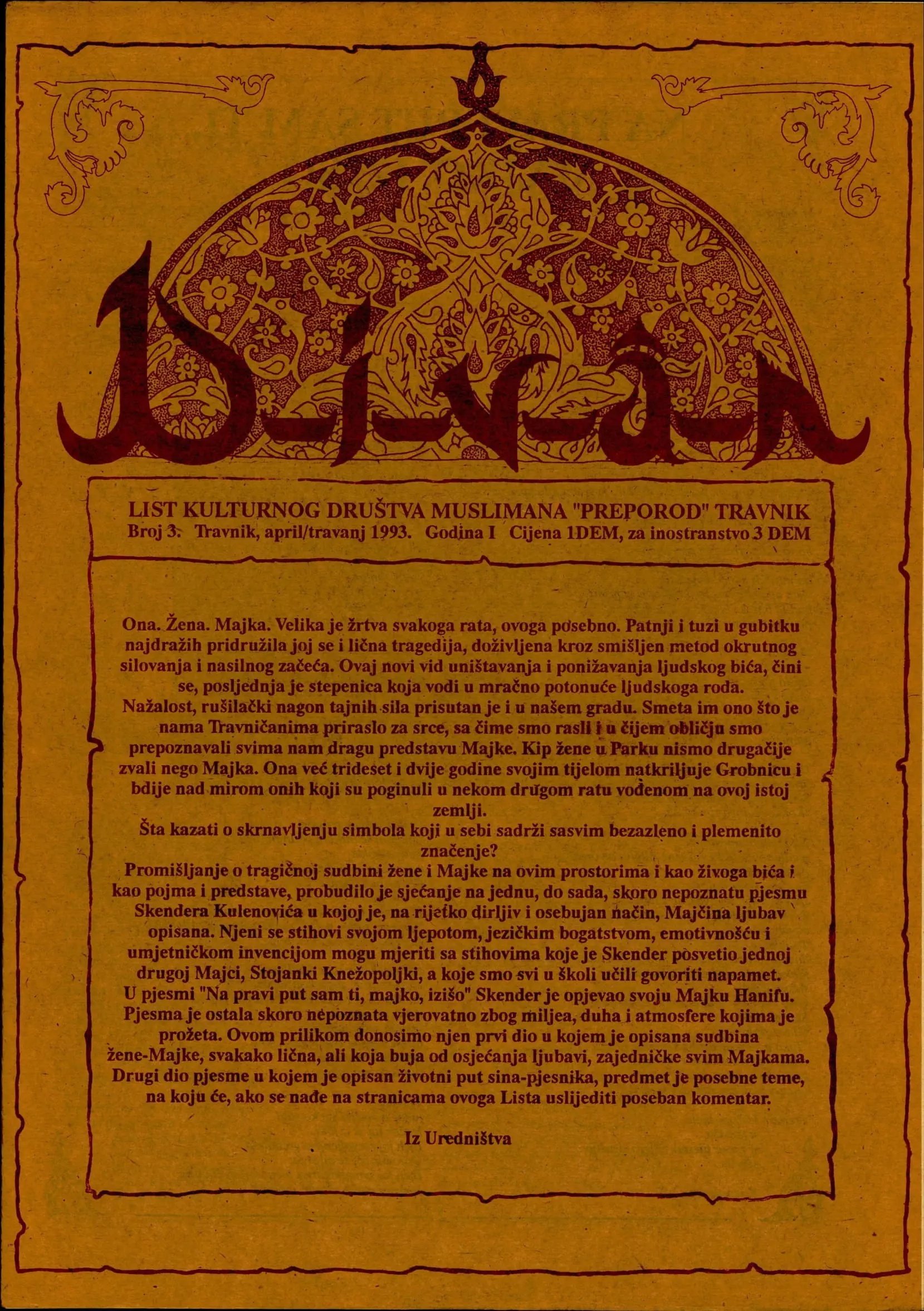 Radovi se dostavljaju isključivo putem e-maila na adrese: bzkpreporod.travnik@gmail.com ili travnik@bzk.ba.