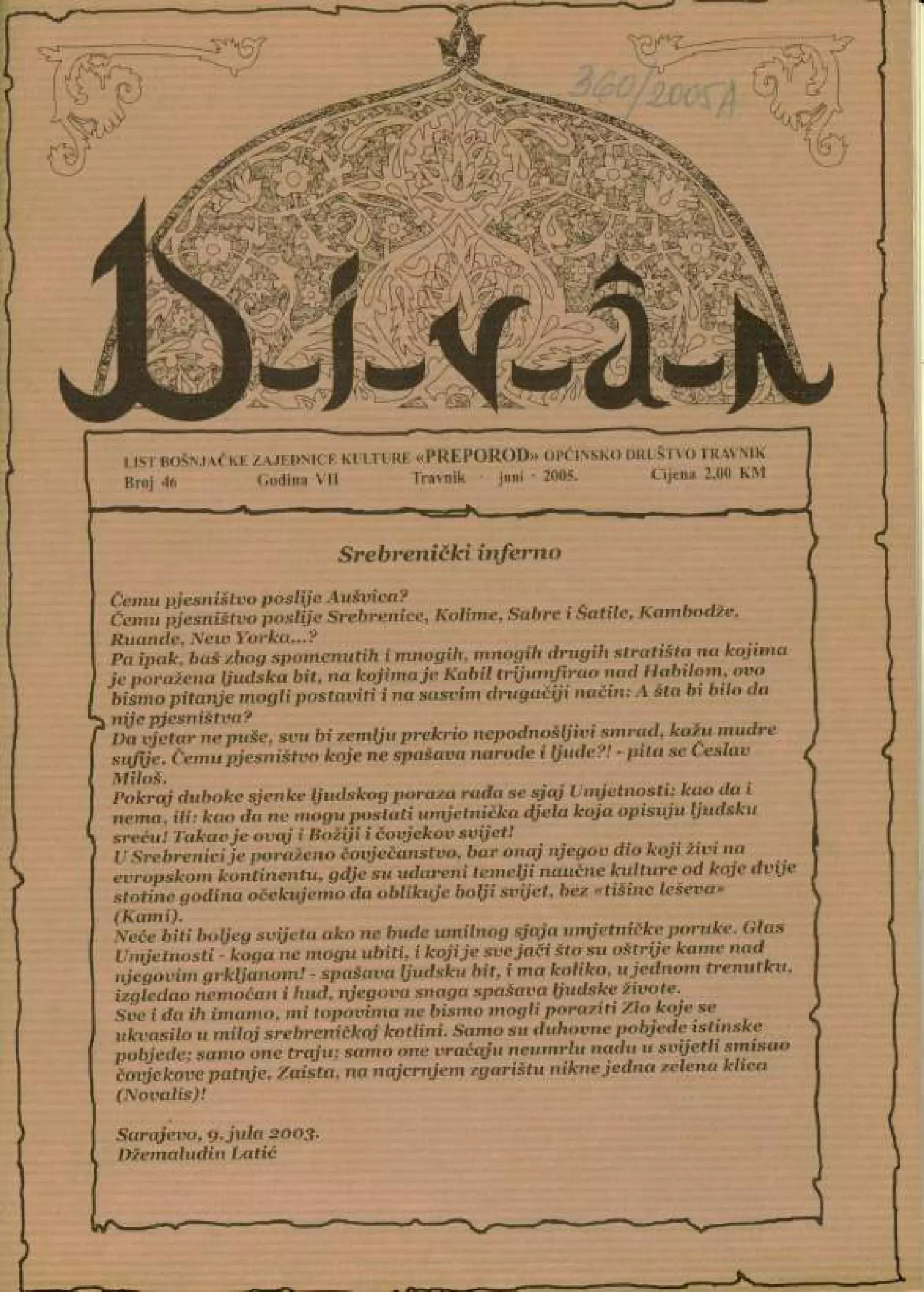 DIVAN će izlaziti redovno jednom godišnje u štampanom i elektronskom izdanju.