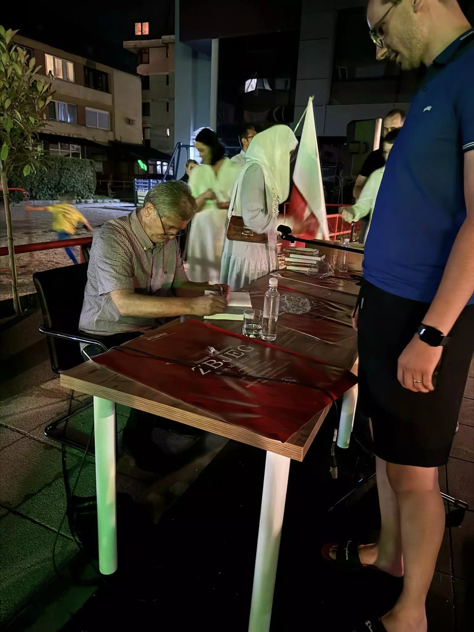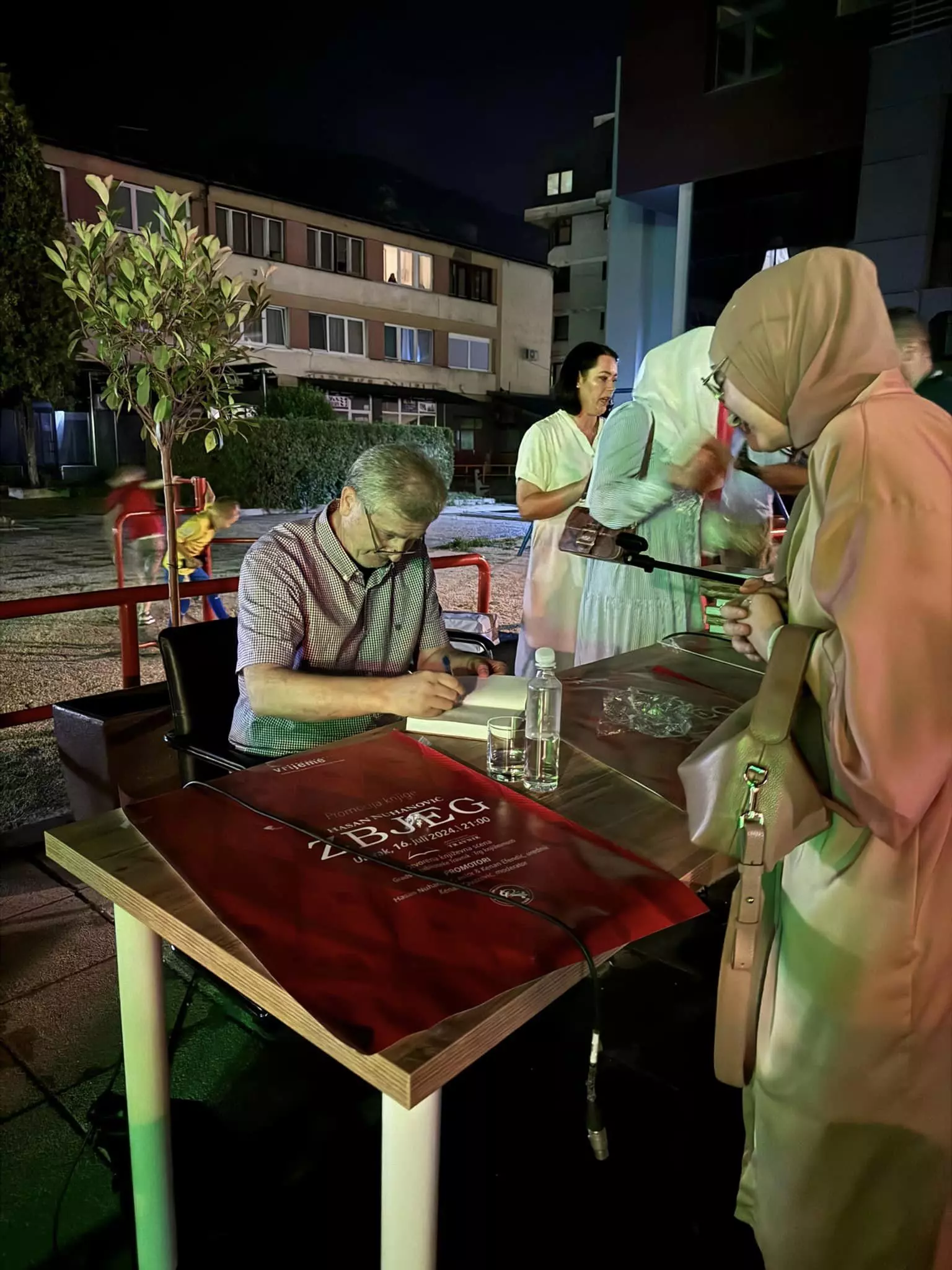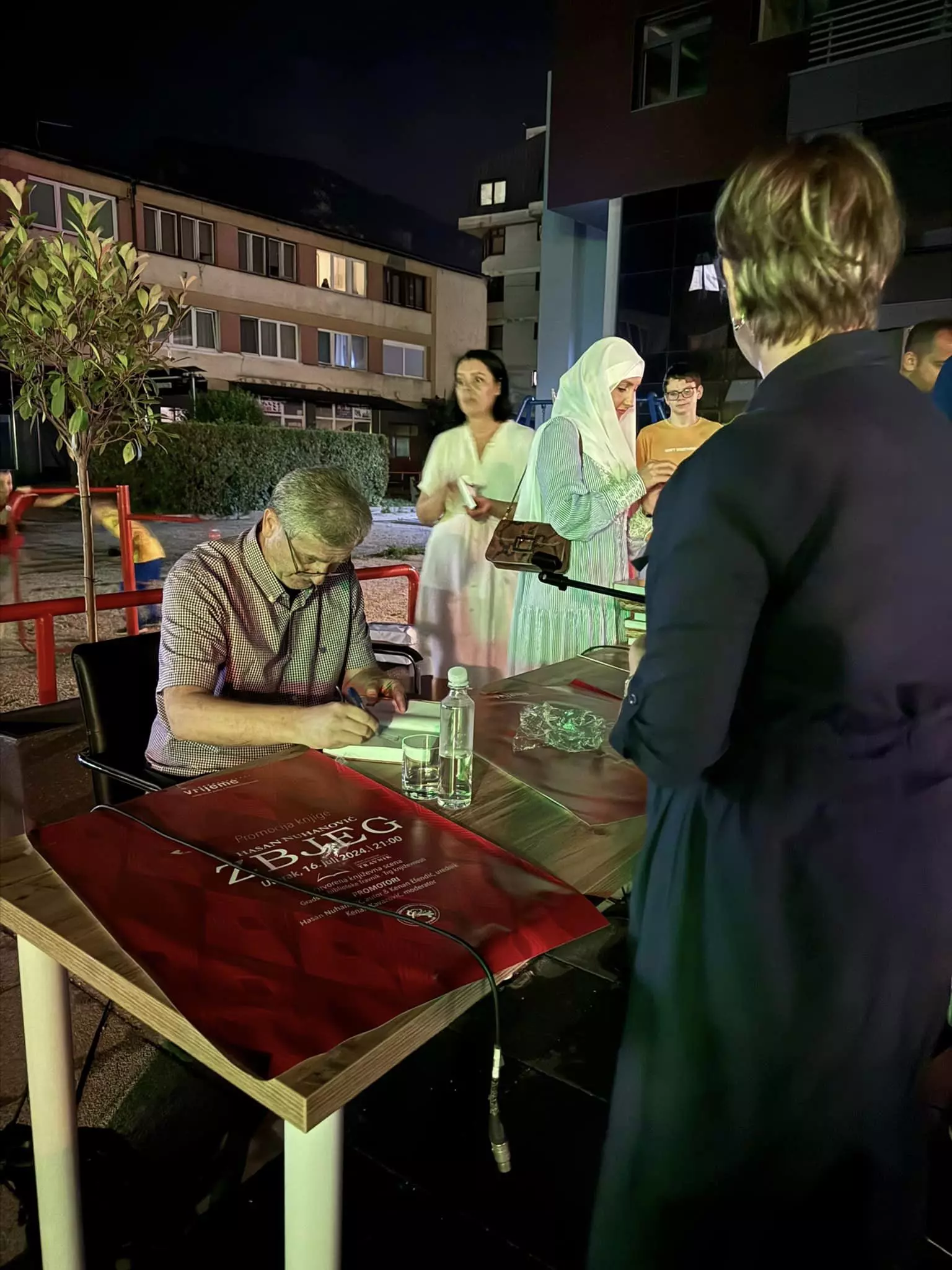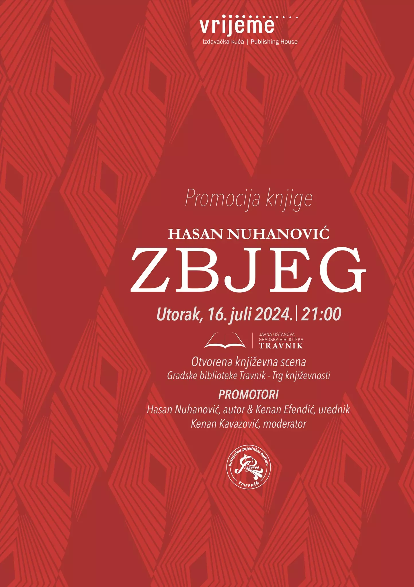 U okviru programa književno-kulturnih događaja/promocija Gradske biblioteke Travnik večeras je na Trgu književnosti u Travniku upriličena promocija knjige/romana „Zbjeg“ Hasana Nuhanovića, svjedoka genocida i istaknutog borca za istinu o genocidu u Srebrenici.