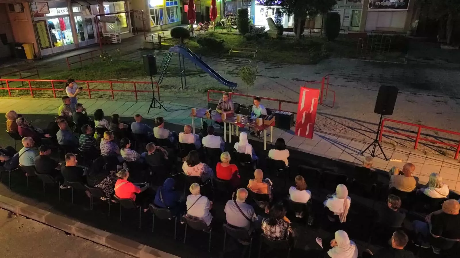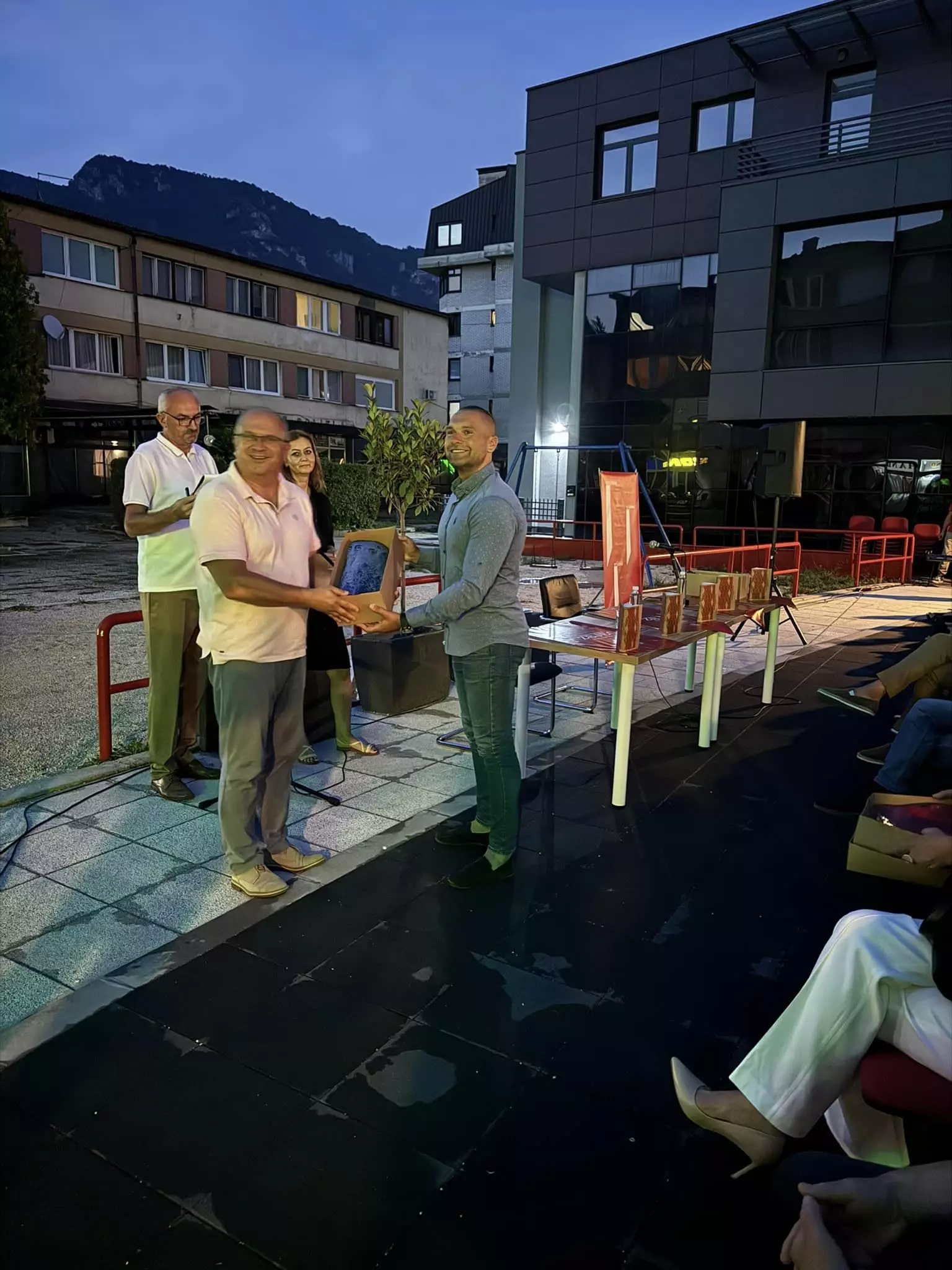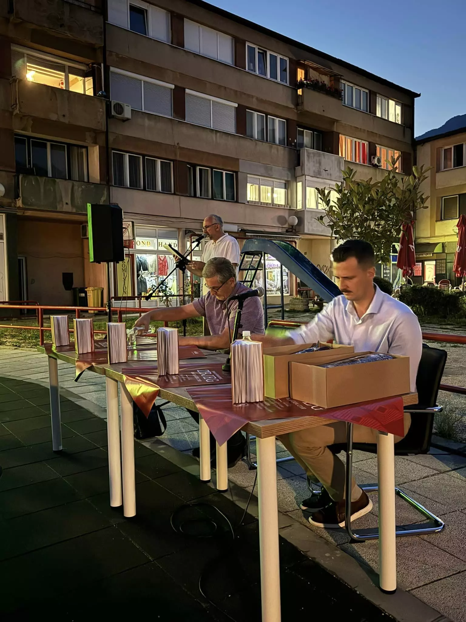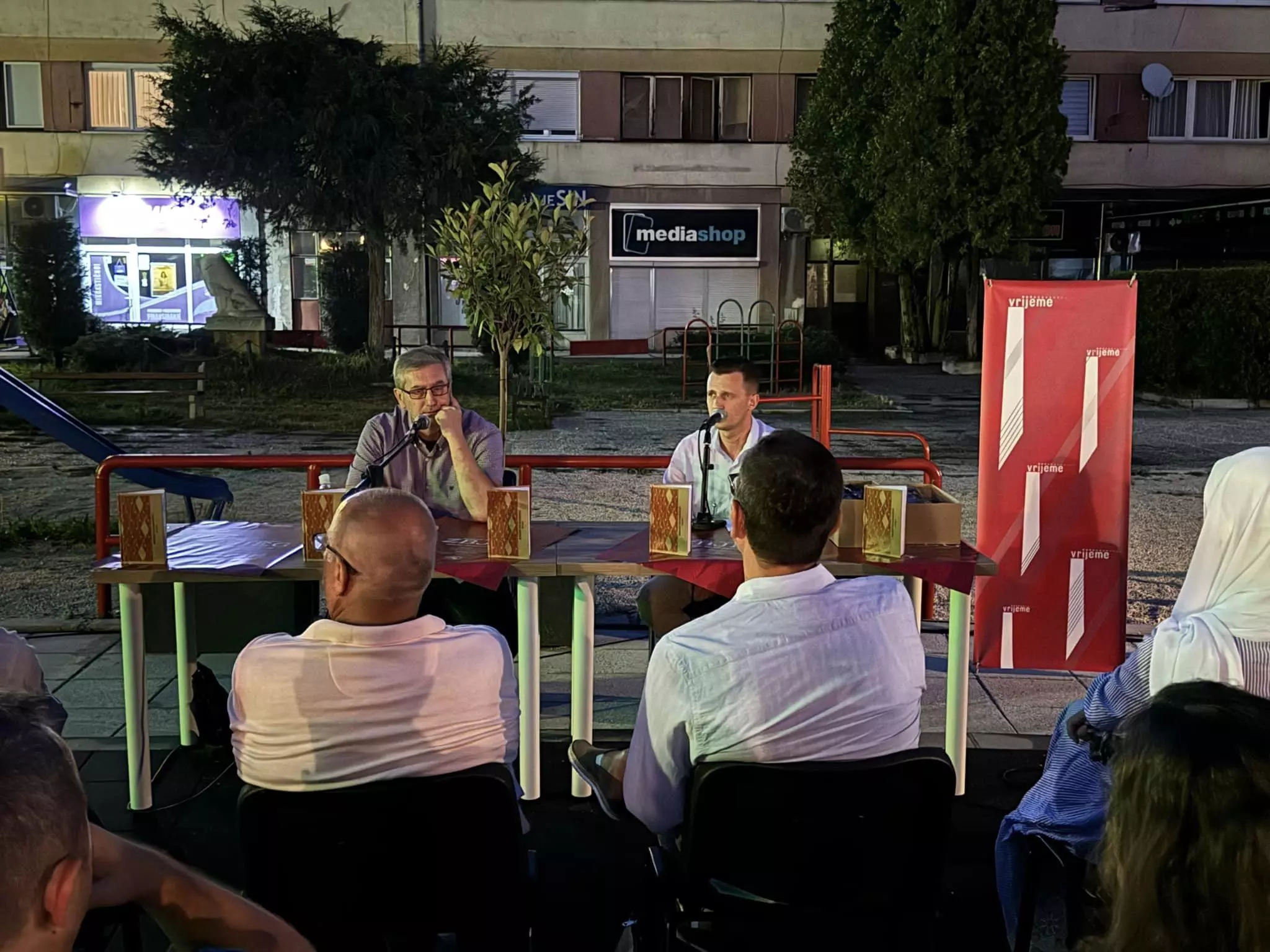 S autorom, Hasanom Nuhanovićem, razgovarao je promotor mr. Kenan Efendić, kritičar i urednik u Izdavačkoj kući „Vrijeme“, a moderator promocije bio je Kenan Kavazović.