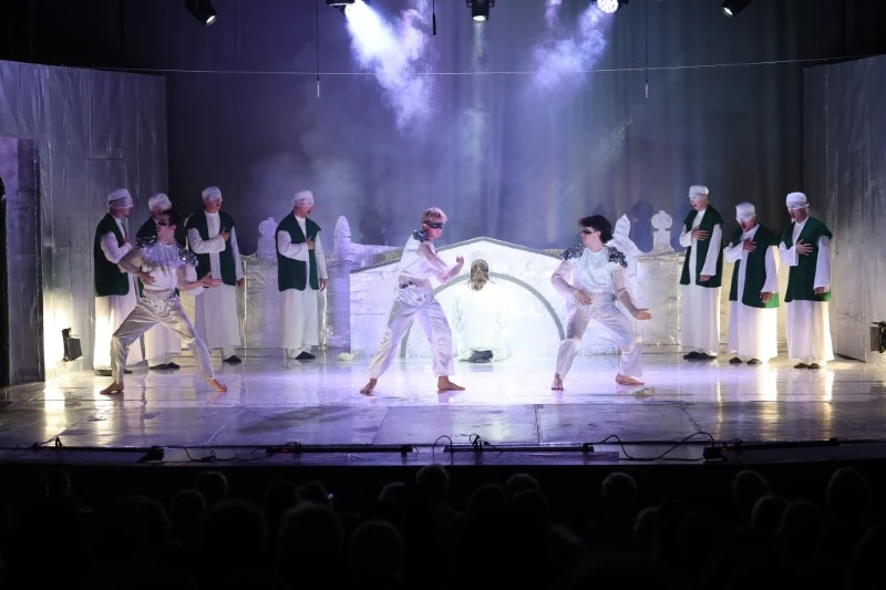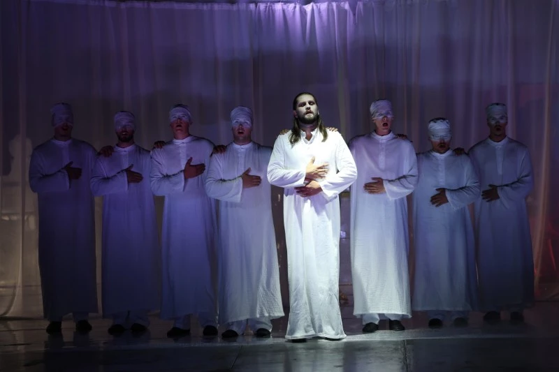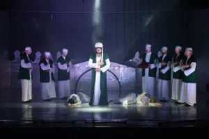 Ulogu Ilhamije ima tenor Ermin Aščerić, baletni plesači su David Ožvat, David Petrović i Kosta Spilkucić, hor čine Eldar Alajbegović, Adis Ismić, Adi Mehić, Mahir Arnaut, Ahmed Topoljak, Emin Arifović, Ahmed Durmić, Adnan Čančar, a uloge četverice Ilhamijinih sinova djeca Vedad Babanović, Fatih Memić, Davud Buljubašić i Rijad Kos, dok semazeme igraju članovi Ansambla tekije Mesudija.